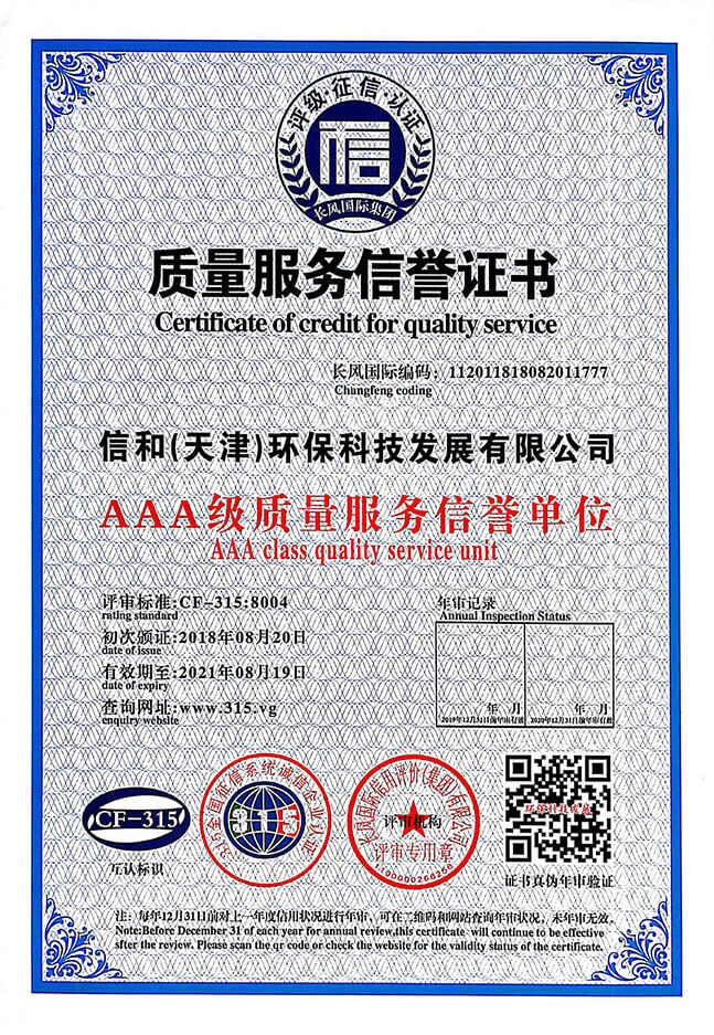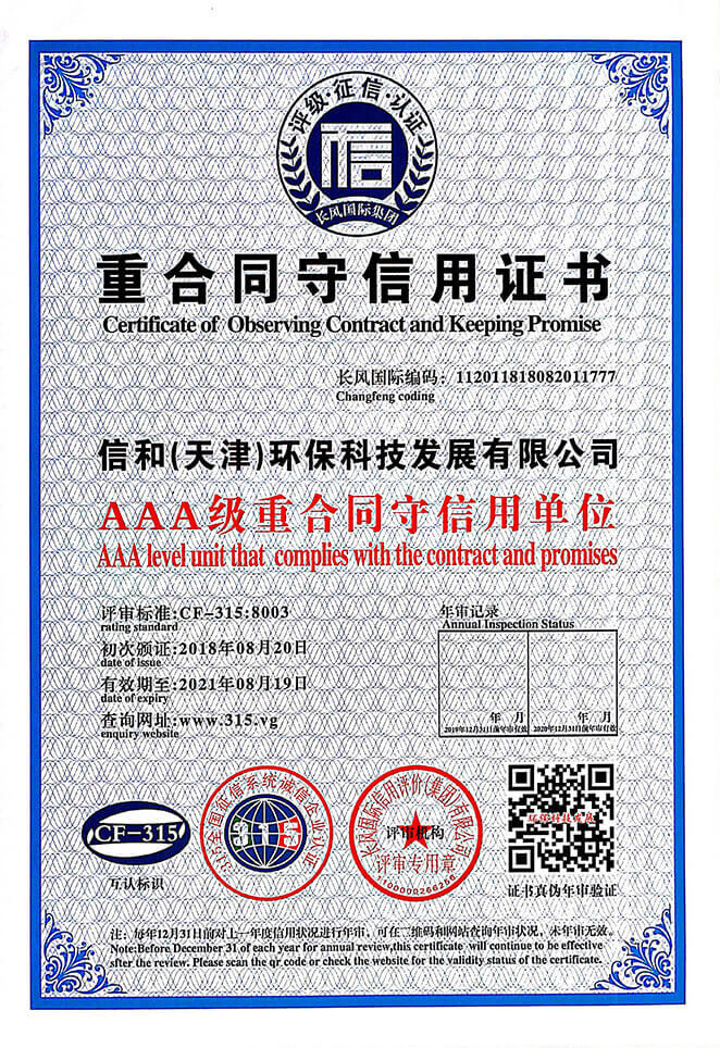“質(zhì)量就是生命”。信和重質(zhì)量、守信用,被中國誠信品牌萬里行推薦“誠信示范單位”、“AAA資信等級”、“AAA級誠信經(jīng)營示范單位”、“誠信經(jīng)理人榮譽證書”、“誠信企業(yè)家榮譽證書”、“中國產(chǎn)品質(zhì)量放心達標企業(yè)”、“誠信品牌聯(lián)盟會員單位”、“中國質(zhì)量誠信AAA級品牌企業(yè)”、“中國百強優(yōu)秀企業(yè)”、“節(jié)能環(huán)保推廣產(chǎn)品”、“全國科技創(chuàng)新企業(yè)”等榮譽稱號。
